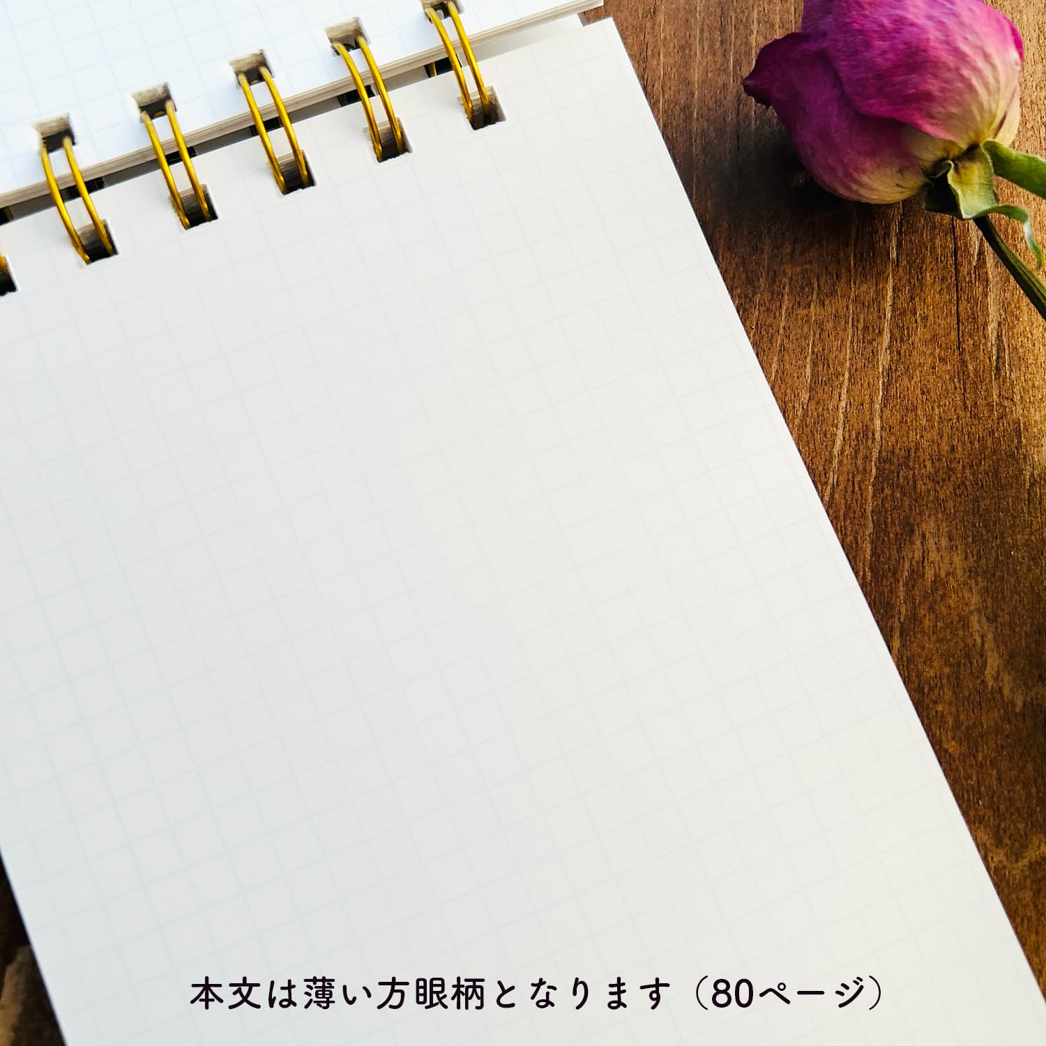 中面は方眼タイプで書籍などによく使われている優しい上質紙で書き心地も◎。約80ページあるので、毎日たっぷりと使えます。